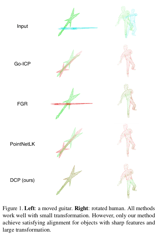DCP 是一篇基于 Deep Learning 来解决 ICP 问题的,其中 Deep Learning 部分主要用于做匹配,后端仍然沿用 SVD 的方法。比很多 MLP 直接出 Pose 的合理,也取得了更好的效果。在与传统方法例如 Go-ICP 以及深度学习方法 PointNetLK 的对比中,都取得了一定的优势。
