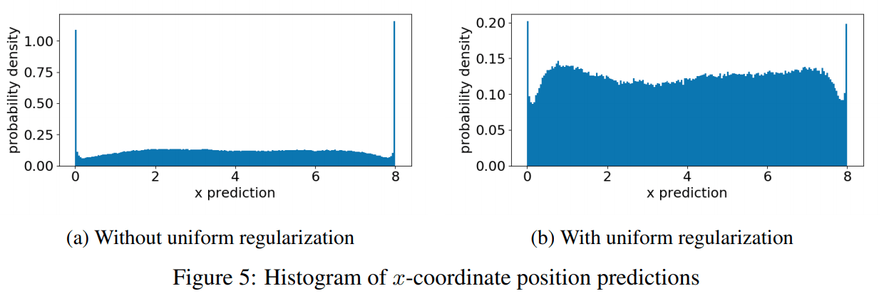 大部分预测点的 offset 坐标可能都会集中在块的边缘(0和8)如图(a)所示,如果加入均匀 loss 则会相对比较分散,如图(b)所示。显然对于一个块内的点 offset 应该是均匀分布才比较合理。